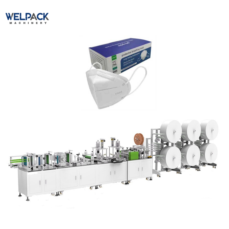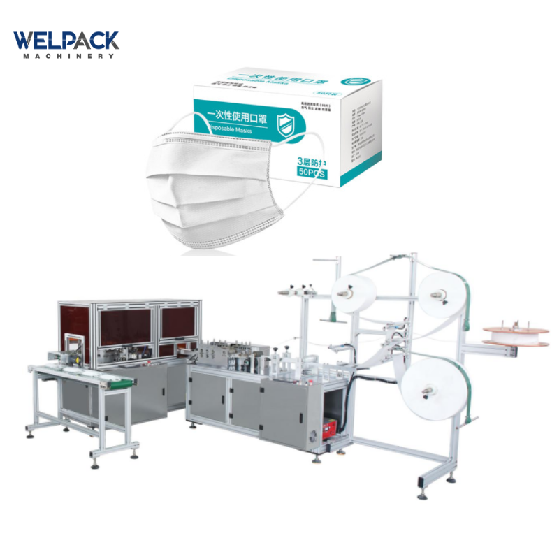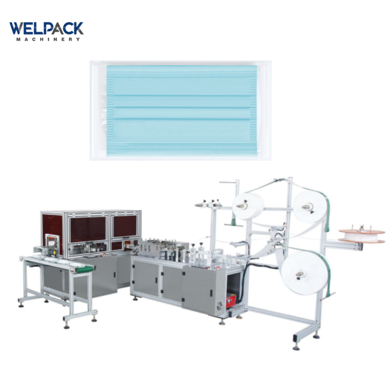 Mask machinery maker is a fully automatic high-speed flat ear loop mask production line newly developed by WELPACK. It includes automatic raw material delivery, automatic conveying, folding, cutting nose bridge, mask edge welding, ultrasonic fusion, forming, cutting and other full process automation, complete the entire production process from the raw material of the coil to the finished mask .